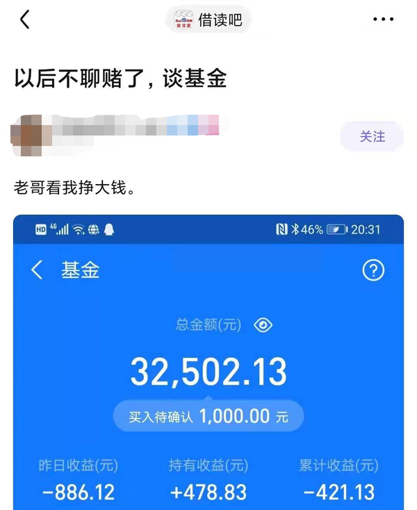 而如今的 “ 借读吧 ” 内,暂时并没有之前的戒赌吧的那么乌烟瘴气,也确实有不少人号称真正戒了赌,甚至还分享起了自己的基金收益。
