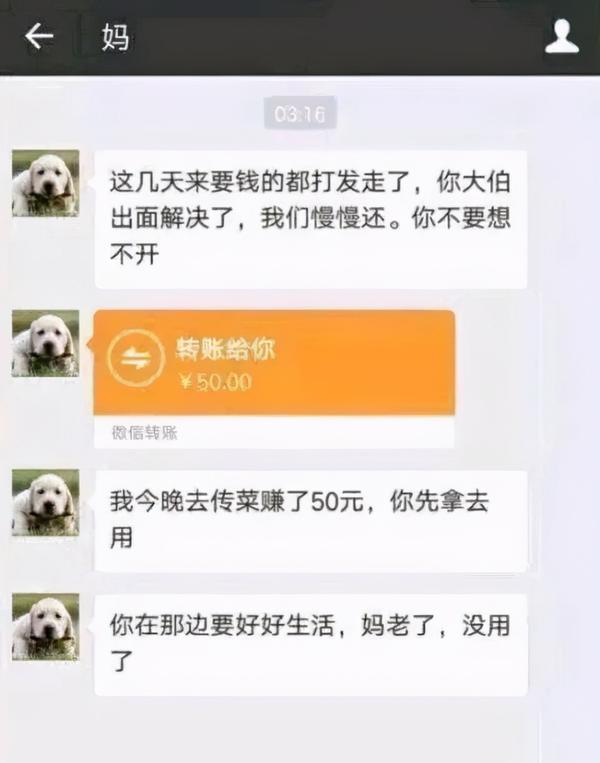 而他的老妈就像传菜梗中的一样,给他转了一大笔钱还债。