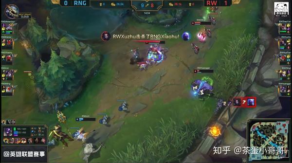 这个时候儿Xiaohu的瑞兹上头,瞎了心要去追蜘蛛,结果被蜘蛛一个E控住配合EZ的伤害直接秒杀,RW的一换三。