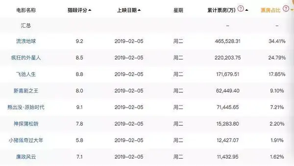 实际上,达到平均水平的影片仅有《流浪地球》、《疯狂的外星人》和《飞驰人生》三部,及格率只有37.5%。