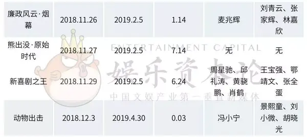 从上图也可以看出,这9部撤离春节档的影片有一个普遍的特征就是制作成本不高、缺乏明星演员或大导演。